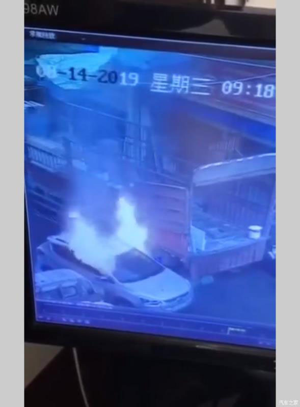 『江淮純電動(dòng)SUV自燃現(xiàn)場(chǎng)監(jiān)控視頻截圖,畫(huà)質(zhì)欠佳敬請(qǐng)諒解』