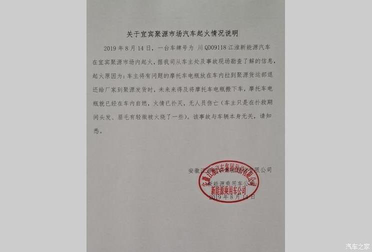 8月14日,江淮純電動(dòng)SUV自燃起火事件的監(jiān)控視頻在社交媒體上曝光,目前江淮官方已針對(duì)該起事件進(jìn)行了回應(yīng),表示本次事故未造成人員傷亡,具體事故原因?yàn)檐?chē)內(nèi)運(yùn)載的有問(wèn)題的摩托車(chē)電瓶發(fā)生自燃,從而導(dǎo)致車(chē)內(nèi)起火,與車(chē)輛本身無(wú)關(guān)。