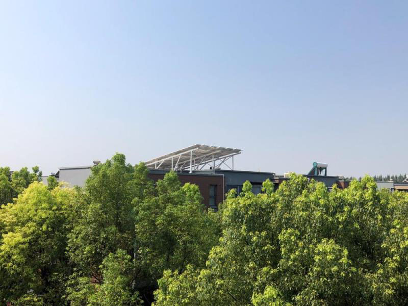 △從下方看起來,整塊電池板的寬度僅比491號別墅樓體寬度略小。