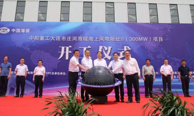 6月26日,中船重工大連市莊河海域海上風(fēng)電場(chǎng)址Ⅱ(300MW)項(xiàng)目在中船重工莊河海上風(fēng)電產(chǎn)業(yè)園舉行開(kāi)工儀式。