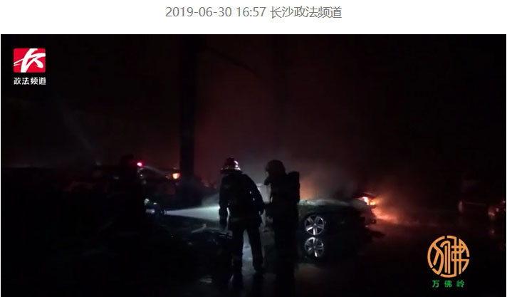 2時30分,同升消防中隊到達現(xiàn)場。經偵查發(fā)現(xiàn),車管所停車場電動車自燃,火災正處于猛烈燃燒階段。2時40分增援中隊到場,3時40分火勢得到控制,4時31分火災完全被撲滅。