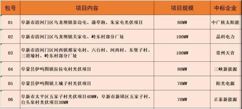 7月3日,遼寧阜新市500MW平價上網(wǎng)光伏資源競爭性開發(fā)項目公示中標結(jié)果,中廣核太陽能開發(fā)有限公司、晶科電力科技股份有限公司、常州天青新能源有限公司(天合光能)、中國三峽新能源有限公司、陽光電源股份有限公司、浙江正泰新能源開發(fā)有限公司分別中標第001、002、003、004、005、006標段。