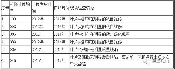 中復連眾其后發(fā)文澄清,此報告沒有全面、客觀的反映事實,在事件處理的過程中,責任認定并沒有得到任何第三方機構的正式確認,僅依據(jù)單方面的推測即對事故原因做出了定性判斷,未經(jīng)過我司的確認許可即對外公布,對我公司的企業(yè)形象造成了嚴重的影響,是對于葉片制造企業(yè)名譽的損害。下表為中復連眾整理的昌圖天橋山項目折損葉片信息: