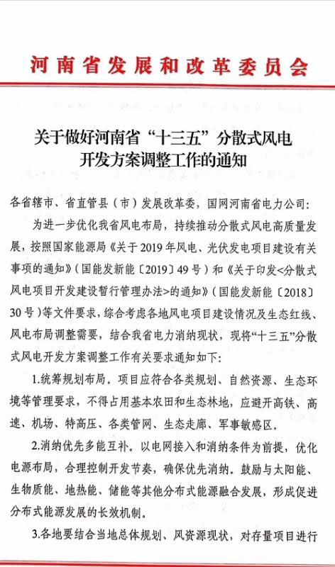 中國(guó)儲(chǔ)能網(wǎng)訊:河南省發(fā)布《關(guān)于做好河南省“十三五”分散式風(fēng)電開(kāi)發(fā)方案調(diào)整工作的通知》,將對(duì)2017年發(fā)布原“十三五”分散式風(fēng)電開(kāi)發(fā)方案做出調(diào)整,原開(kāi)發(fā)方案涉及共124個(gè)項(xiàng)目,總規(guī)模210.7萬(wàn)千瓦。