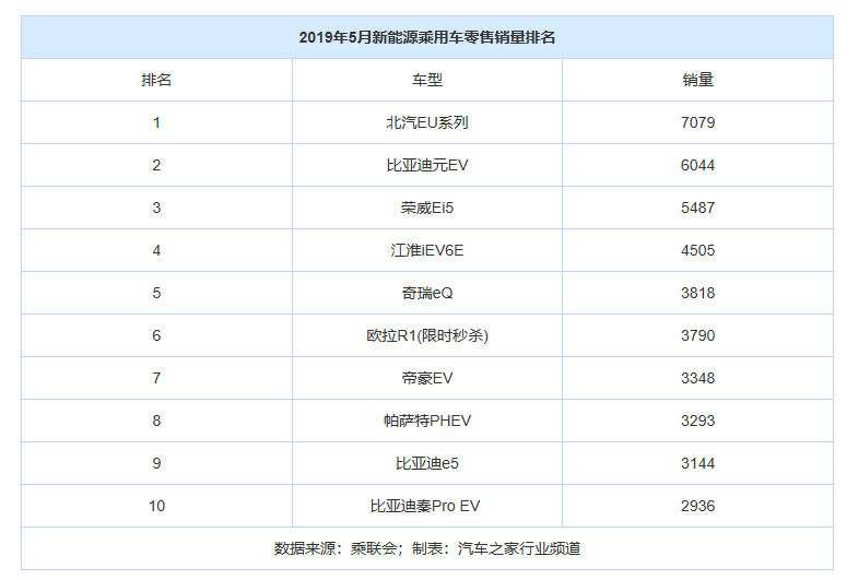 車型方面,2019年5月,北汽EU系列(參數(shù)|詢價)以7079輛獲得第一名,而該車在2018年5月僅售822輛,這使其同比大增761%;比亞迪元EV及榮威Ei5分別以6044輛、5487輛分列第二和第三名。就排名第一的車型北汽EU系列來說,其5月銷量奇高,而北汽新能源官網(wǎng)披露的5月整體銷量為9009輛,北汽EU系列占比高達78.6%;另一方面,用戶普遍表示,相比比亞迪等企業(yè)車型,北汽新能源車型很少見到,那么北汽EU系列都賣給了誰呢?