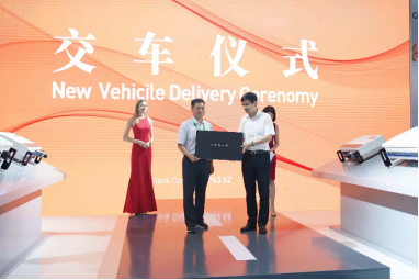 6月4日上午11點,錦浪科技于展位區(qū)舉行了第五代5G逆變器技術(shù)平臺發(fā)布會及特斯拉交車儀式。