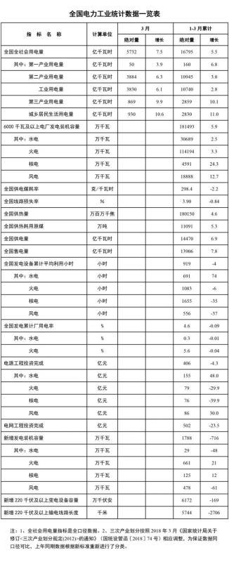 3月份,全社會用電量5732億千瓦時(shí),同比增長7.5%。分產(chǎn)業(yè)看,第一產(chǎn)業(yè)用電量50億千瓦時(shí),同比增長3.9%;第二產(chǎn)業(yè)用電量3884億千瓦時(shí),同比增長6.3%;第三產(chǎn)業(yè)用電量869億千瓦時(shí),同比增長9.9%;城鄉(xiāng)居民生活用電量930億千瓦時(shí),同比增長10.6%。