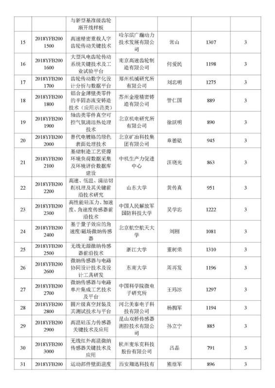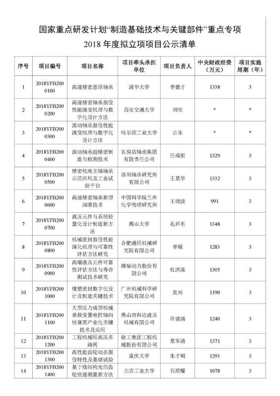 根據(jù)《國務(wù)院關(guān)于改進(jìn)加強(qiáng)中央財(cái)政科研項(xiàng)目和資金管理的若干意見》(國發(fā)〔2014〕11號(hào))、《國務(wù)院關(guān)于深化中央財(cái)政科技計(jì)劃(專項(xiàng)、基金等)管理改革方案的通知》(國發(fā)〔2014〕64號(hào))、《科技部、財(cái)政部關(guān)于印發(fā)<國家重點(diǎn)研發(fā)計(jì)劃管理暫行辦法>的通知》(國科發(fā)資〔2017〕152號(hào))等文件要求,現(xiàn)對(duì)“制造基礎(chǔ)技術(shù)與關(guān)鍵部件”重點(diǎn)專項(xiàng)2018年度擬立項(xiàng)的項(xiàng)目信息進(jìn)行公示(詳見附件)。