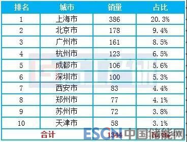 2019年1月蔚來汽車銷量TOP10城市(輛)