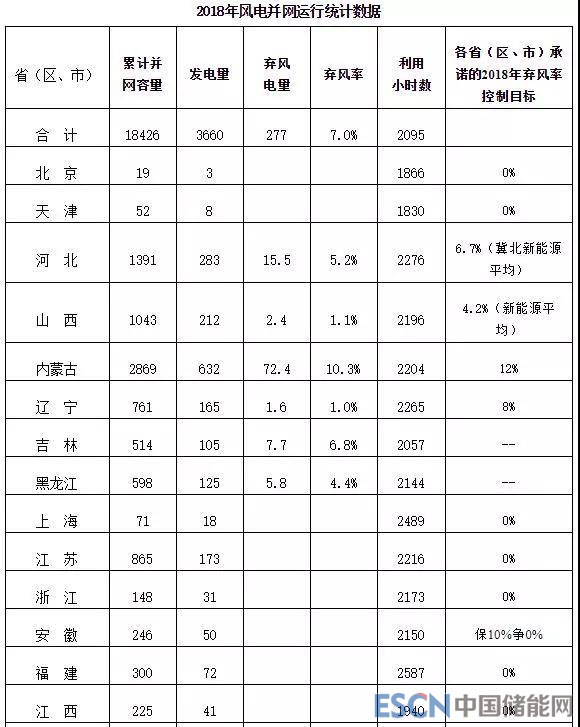 中國(guó)儲(chǔ)能網(wǎng)訊:國(guó)家能源局今日發(fā)布2018年風(fēng)電并網(wǎng)運(yùn)行情況,以下為具體數(shù)據(jù):