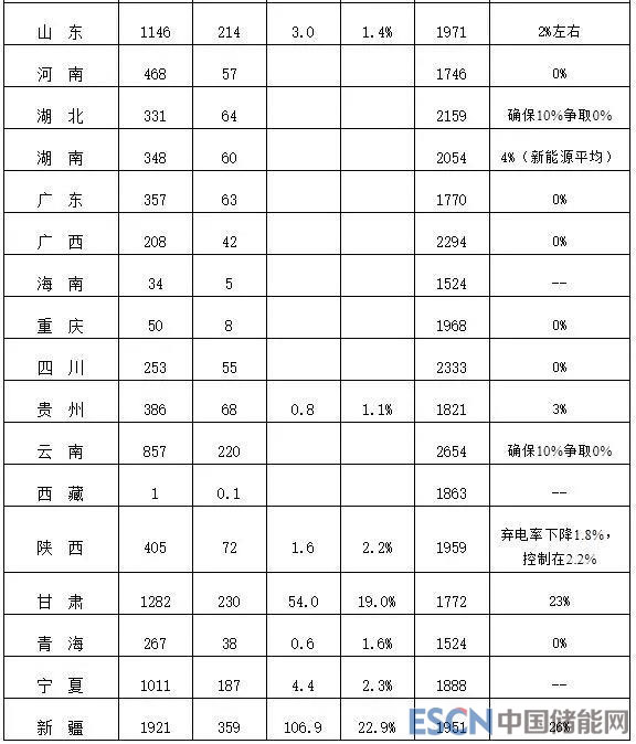 4.各省承諾的全年棄風(fēng)率控制目標(biāo)為各?。▍^(qū)、市)在落實(shí)《解決棄水棄風(fēng)棄光問題實(shí)施方案》工作方案中承諾的2018年全年棄風(fēng)率控制目標(biāo),“--”表示工作方案中未提出棄風(fēng)控制目標(biāo)。