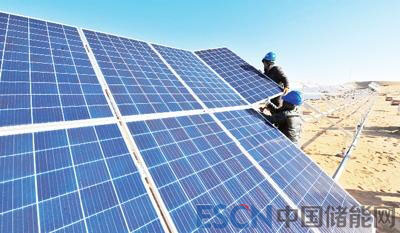 黃沙漫漫的庫布其沙漠腹地,太陽能光伏板整齊陣列,宛若一片藍(lán)色海洋。