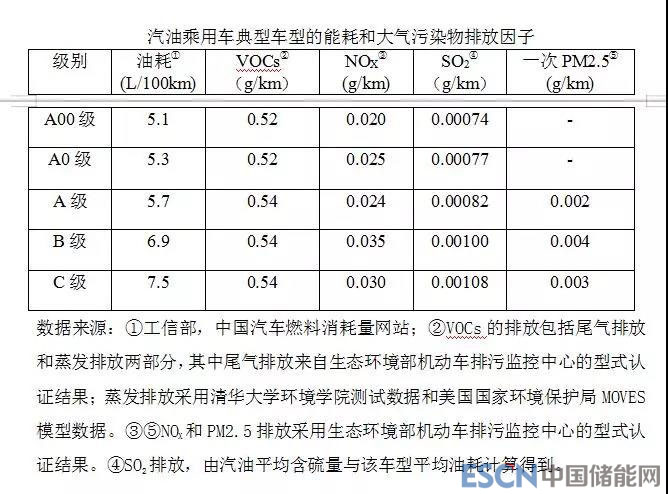 為了更加具體地對(duì)比和分析純電動(dòng)乘用車(chē)與汽油乘用車(chē)的燃料周期的溫室氣體和大氣污染物排放,綜合考慮銷量、性能等因素,本研究分別選取了A00級(jí)到C級(jí)各級(jí)別乘用車(chē)的典型車(chē)型,核算和對(duì)比分析了各典型車(chē)型燃料周期的溫室氣體和大氣污染物排放因子。