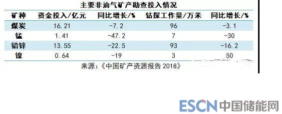 與2016年相比,煤炭、鉛鋅、錳、鎳等15種主要非油氣礦產(chǎn)的資金投入有所減少;鎳、銀、石墨3種主要非油氣礦產(chǎn)鉆探工作量有所增長,其中鎳的增幅最大,為50%,其余12種鉆探工作量都有所下降。