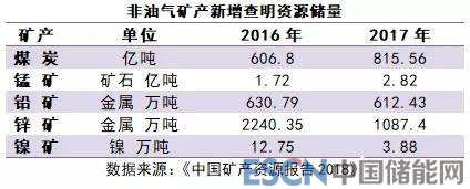 《報(bào)告》顯示,截至2017年底,我國已發(fā)現(xiàn)礦產(chǎn) 173 種,其中天然氣水合物為新發(fā)現(xiàn)礦種,煤炭、石油、天然氣、錳礦、金礦、石墨等主要礦產(chǎn)查明資源儲(chǔ)量增長。