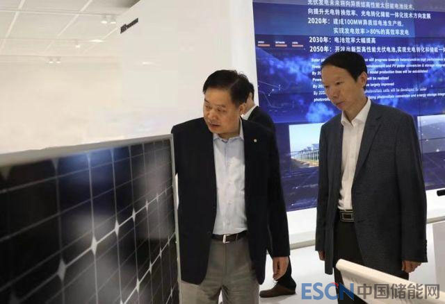 圖為長城資產(chǎn)董事長沈曉明(右)在協(xié)鑫集團(tuán)董事長朱共山(左)的陪同下參觀未來能源館。