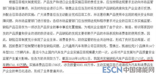 中國儲能網(wǎng)訊:10月31日,國家質檢總局缺陷產(chǎn)品管理中心發(fā)布公告稱:截至2018年10月21日,我國共實施缺陷汽車產(chǎn)品召回1712次,涉及車輛6741.83萬輛;2018年發(fā)生新能源汽車起火事件40余起。