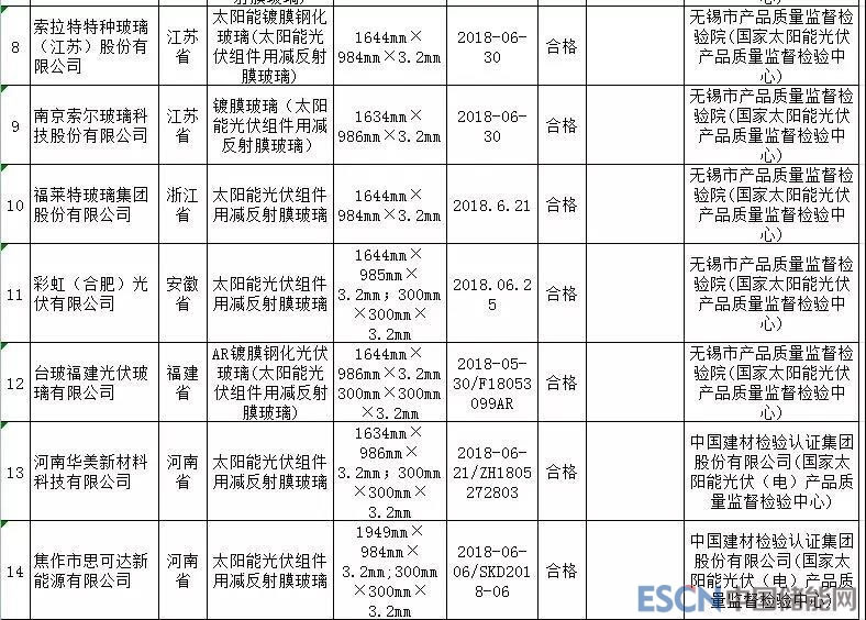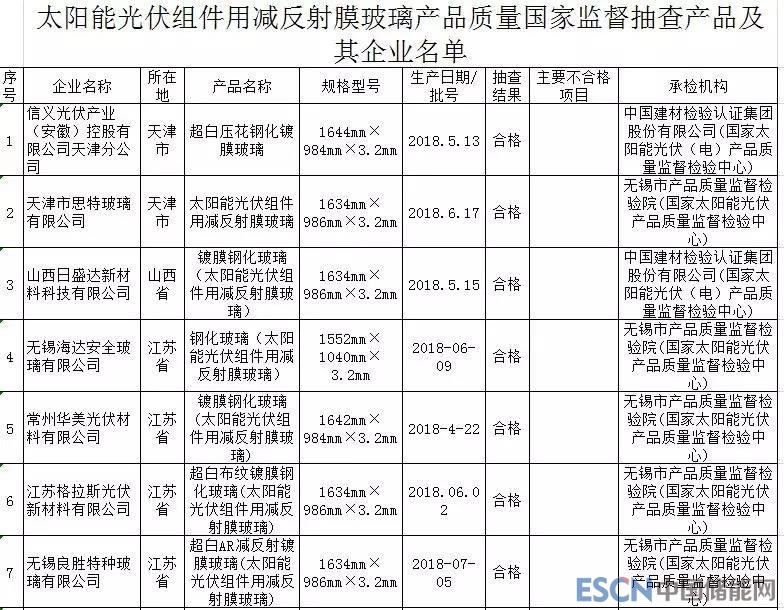太陽(yáng)能光伏組件用減反射膜玻璃產(chǎn)品質(zhì)量國(guó)家監(jiān)督抽查產(chǎn)品及其企業(yè)名單