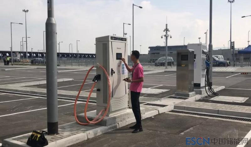 清晨出發(fā),一路迎著海風(fēng),我們來到了位于香港國際機場旁的東人工島公眾停車場,盛弘充電樁應(yīng)用在此。這臺充電樁,是全香港第一臺公眾國標(biāo)充電樁。