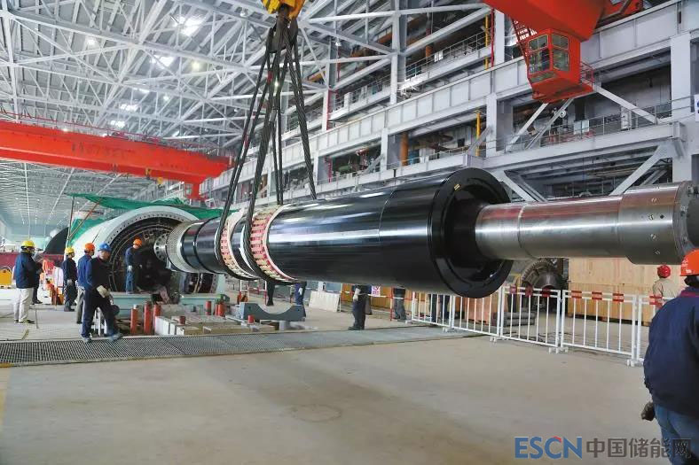 泰州電廠二期工程建設(shè)安裝發(fā)電機(jī)轉(zhuǎn)子。