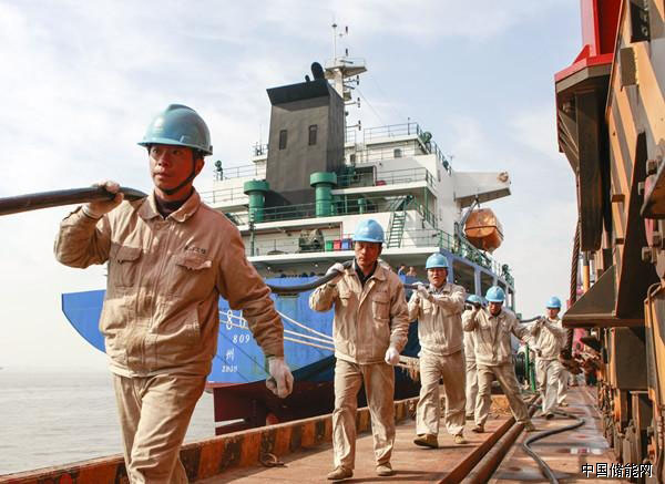 國(guó)家電網(wǎng)公司統(tǒng)一技術(shù)標(biāo)準(zhǔn),強(qiáng)化關(guān)鍵設(shè)備研制,引領(lǐng)長(zhǎng)江流域岸電建設(shè),圖為江蘇靖江市供電公司員工在新華港碼頭展放電力電纜