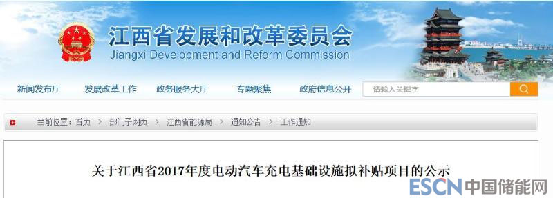 關(guān)于江西省2017年度電動(dòng)汽車(chē)充電基礎(chǔ)設(shè)施擬補(bǔ)貼項(xiàng)目的公示