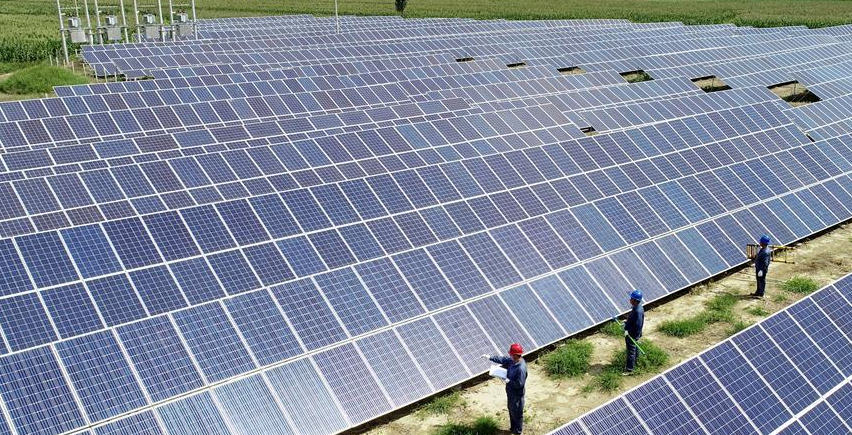 中國儲能網(wǎng)訊:工作人員在衡水市武強縣武強鎮(zhèn)樂郊村集中式光伏扶貧發(fā)電站巡檢(8月29日無人機拍攝)。 近年來,河北省衡水市積極探索“政府+光伏企業(yè)+貧困戶”的光伏扶貧模式,推進鄉(xiāng)村集中式光伏扶貧項目“陽光工程”建設(shè),在具備條件的貧困村建設(shè)光伏電站推進脫貧攻堅,幫助貧困人口增收。 截至目前,衡水市已建成村級集中式光伏扶貧電站111座。 新華社記者 朱旭東 攝