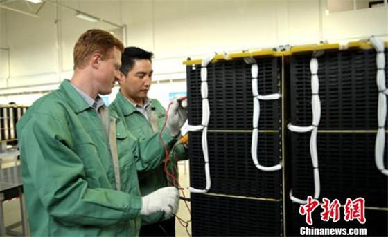 車間生產(chǎn)線上技術人員正在測試組裝好的電容模塊。劉忠俊 攝