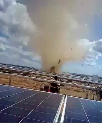 中國(guó)儲(chǔ)能網(wǎng)訊:近日,某地一光伏項(xiàng)目遭遇極端天氣。視頻中的光伏電站被龍卷風(fēng)像攪拌機(jī)一樣將光伏板卷入氣流中,在空中飛舞起來,場(chǎng)面驚人,宛如科幻大片。