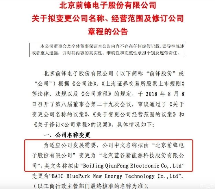 8月8日晚,SST前鋒(600733.SH)發(fā)布公告稱(chēng),公司名稱(chēng)擬由“北京前鋒電子股份有限公司”變更為“北汽藍(lán)谷新能源科技股份有限公司”,經(jīng)營(yíng)范圍由電子產(chǎn)品、通訊設(shè)備銷(xiāo)售等變更為汽車(chē)設(shè)計(jì)、研發(fā)、銷(xiāo)售等。由此,北汽新能源在事實(shí)層面已經(jīng)實(shí)現(xiàn)了“借殼上市”,只差“敲鐘”這一流程。