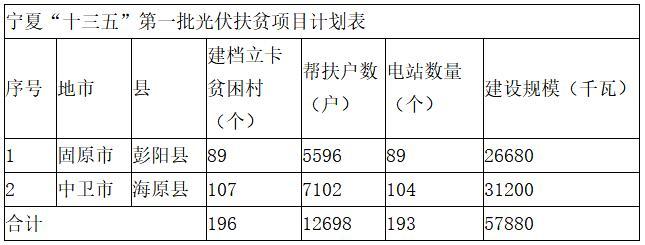 寧夏“十三五”第一批光伏扶貧項目計劃表