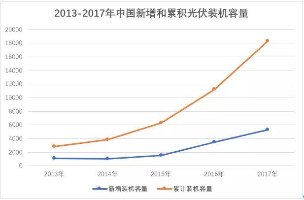 近年來,全球光伏新增裝機(jī)快速增長,2017年,新增裝機(jī)容量達(dá)到102GW,同比增長超過37%,新增裝機(jī)容量大于燃煤、天然氣和核電凈增裝機(jī)的總和,累計(jì)容量達(dá)到405GW。2017年,除中國外,主要增長的市場(chǎng)有日本的7GW、美國的10.6GW、歐洲的8.61GW和印度的9.6GW。