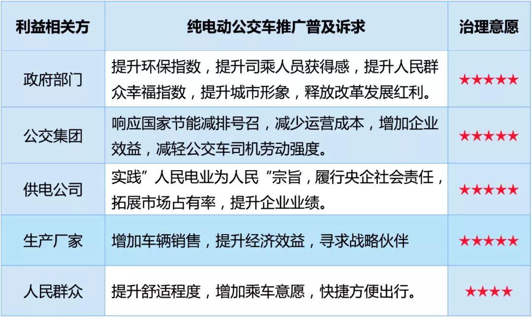 通過調(diào)研,及時(shí)掌握政府部門、公交集團(tuán)、供電公司、生產(chǎn)廠家、人民群眾等不同利益群體在實(shí)施純電動(dòng)公交車全覆蓋的過程中具備哪些資源,提供哪些支撐,負(fù)擔(dān)哪些成本,實(shí)施哪些服務(wù),為純電動(dòng)公交車順利推廣普及奠定基礎(chǔ)。
