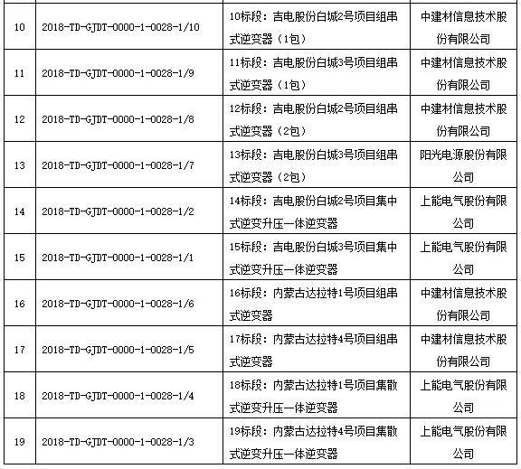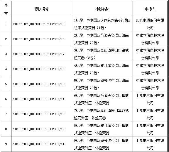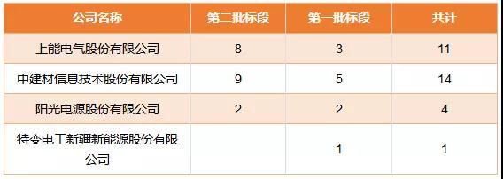 7月7日,國電投第一批和第二批領跑者共1.3GW招標結果公布,其中光伏逆變器招標分別分為11個標段與19個標段,其中中建材中標14個標段,上能電氣包攬集散式9個標段和集中式2個標段,中標容量460MW,陽光電源與特變分別中標4個和1個,各家斬獲頗豐。