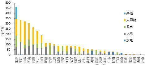 太陽能發(fā)電新增裝機主要分布在山東、浙江、安徽、江蘇、河南等省份(新增裝機150萬千瓦以上)。