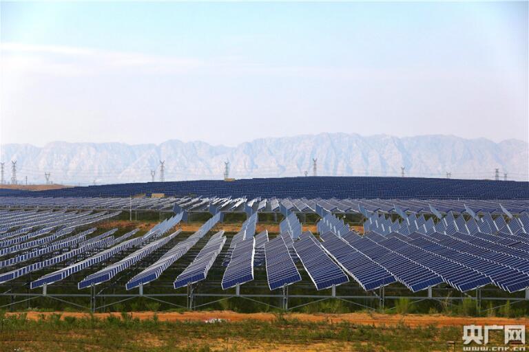 這是內(nèi)蒙古自治區(qū)鄂爾多斯市杭錦旗的生態(tài)光伏治沙基地,由生態(tài)修復(fù)企業(yè)億利集團(tuán)投入建成。在2萬(wàn)畝沙地上支起的60萬(wàn)塊光伏發(fā)電板,既能遮光擋風(fēng)、固定沙帶,還能利用庫(kù)布其沙漠每年3180小時(shí)日照等資源進(jìn)行發(fā)電。2016年建成運(yùn)作以后,基地年發(fā)電量達(dá)5億度,銷售收入約4.5億元。