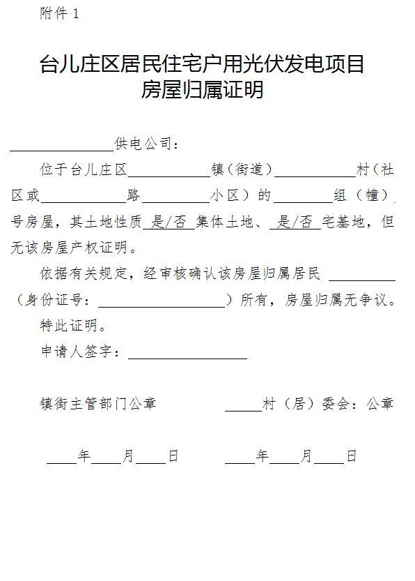 附件:1、臺兒莊區(qū)居民住宅戶用光伏發(fā)電項目房屋歸屬證明