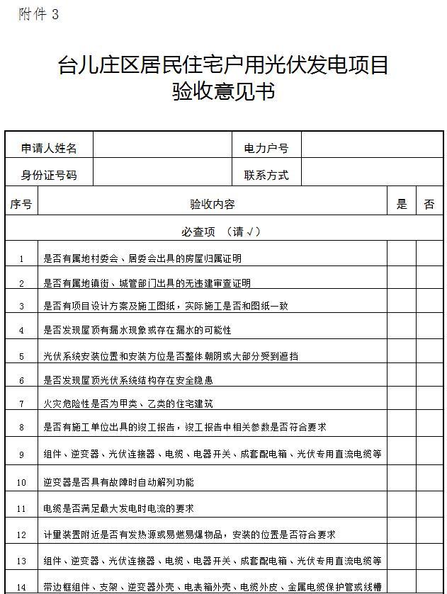 3、臺兒莊區(qū)居民住宅戶用光伏發(fā)電項目驗收意見書