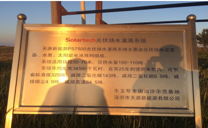 張立強(qiáng)從母親牛玉琴手中接過這片不毛之地開始,十幾年過去了,除了不斷與沙魔頑強(qiáng)斗爭之外,“沙漠經(jīng)濟(jì)”、“沙漠生產(chǎn)力”的概念不斷浮現(xiàn)在張立強(qiáng)的腦海當(dāng)中。他意識到僅僅治沙是不夠的,如何帶來更高效,更和諧的沙漠效益成了張立強(qiáng)的著眼所在。不光要治沙,還要將沙漠變成切實(shí)有效的經(jīng)濟(jì)效益地帶。沙荒地帶,可塑性強(qiáng),在理順沙荒的生態(tài)基礎(chǔ)上,還能種植經(jīng)濟(jì)作物,而采用了深圳天源的光伏揚(yáng)水灌溉系統(tǒng),就是因地制宜,將毛烏素陽光的燥熱轉(zhuǎn)化成優(yōu)越的資源條件,充分利用太陽輻射能量將其轉(zhuǎn)化成電能,驅(qū)動(dòng)水泵抽取地下水進(jìn)行節(jié)水灌溉,為沙漠治理提供了切實(shí)有效的解決方案。而在治沙基地,一組組太陽能電池板并列排布在眼前,旁邊的蓄水箱和灌溉設(shè)備更在陽光下顯得熠熠生輝,光伏揚(yáng)水系統(tǒng)抽出的水源源不斷地流淌出來,順著管道通過微噴、滴灌等節(jié)水灌溉設(shè)備涌向一片片茂密的林地和菜田,滋潤著這片干涸的土地,更滋潤著整個(gè)毛烏素的舊貌換新顏和全新氣象。