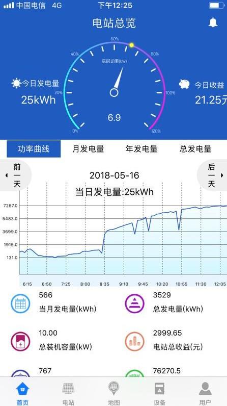 我們發(fā)現,這套系統在零部件選型方面追求極致的低成本只是造成發(fā)電量低下的一個原因,此外該系統為了追求裝機量,在屋頂背面還進行了安裝。尤其是在上午十點半從手機APP中看到的數據顯示,單kW發(fā)電量差距高達30%。