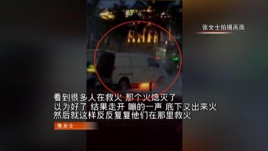 張女士表示,當(dāng)晚七點(diǎn)左右,她帶著小孩來到沙井文化藝術(shù)中心的圖書館逛逛,接著就看到了視頻里的一幕,這輛白色的電動(dòng)小面包車車底出現(xiàn)明火,管理處人員和保安人員隨即拿著滅火器滅火。