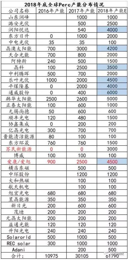 附贈一個小彩蛋(2018年底perc產能統(tǒng)計):