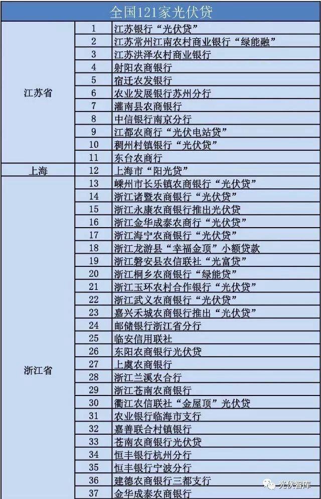 據(jù)統(tǒng)計(jì),目前已經(jīng)有19省市121家銀行開(kāi)展了“光伏貸”業(yè)務(wù)。