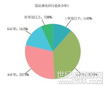 參與調(diào)研人群大多數(shù)為2-3年,可見近2-3年間,行業(yè)影響力擴大,越來越多的人開始關(guān)注并參與光伏行業(yè)。