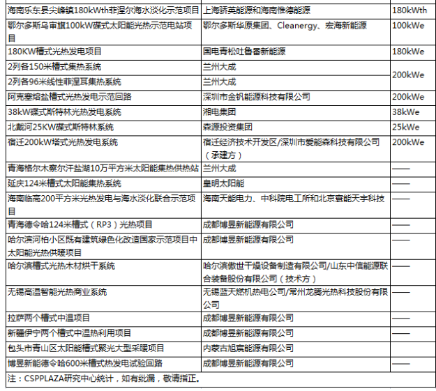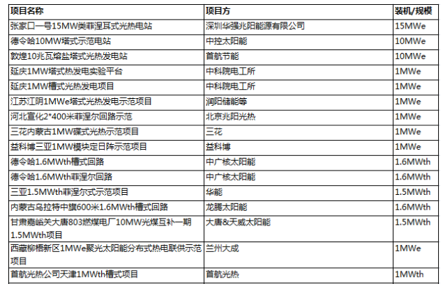 其中,純發(fā)電項目的總裝機約為41MWe,除了華強兆陽張家口一號15MW菲涅爾光熱電站、中控德令哈10MW塔式光熱電站和首航節(jié)能敦煌10MW塔式光熱電站具有商業(yè)化示范規(guī)模以外,其它均為小型的示范和實驗性項目。此外,聚光光熱熱利用領域也在不斷發(fā)展,用于取暖、供熱、烘干等領域的聚光光熱項目不斷增多。