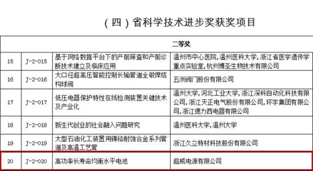 中國(guó)儲(chǔ)能網(wǎng)訊:4月11日,2017年度浙江省科學(xué)技術(shù)獎(jiǎng)勵(lì)大會(huì)在浙江省人民大會(huì)堂舉行,由超威集團(tuán)承擔(dān)的省級(jí)新產(chǎn)品試制計(jì)劃項(xiàng)目“高功率長(zhǎng)壽命均衡水平電池”項(xiàng)目獲得浙江省科學(xué)技術(shù)進(jìn)步二等獎(jiǎng),受到大會(huì)隆重表彰。這是超威集團(tuán)堅(jiān)持科技創(chuàng)新、加快轉(zhuǎn)型升級(jí)結(jié)出的又一碩果。