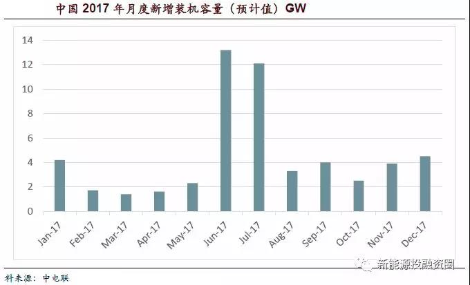 對(duì)比2017年月度裝機(jī)情況,可以看到一季度是光伏傳統(tǒng)的淡季,隨著臨近6.30裝機(jī)情況會(huì)明顯提高,下半年分布式光伏會(huì)繼續(xù)帶領(lǐng)市場(chǎng)保持較高的景氣度。我們認(rèn)為從裝機(jī)結(jié)構(gòu)上來(lái)看,2018年不會(huì)發(fā)生大的改變,因此二季度開(kāi)始將進(jìn)入采購(gòu)?fù)荆夥鱾€(gè)產(chǎn)業(yè)環(huán)節(jié)景氣度會(huì)大幅提高。