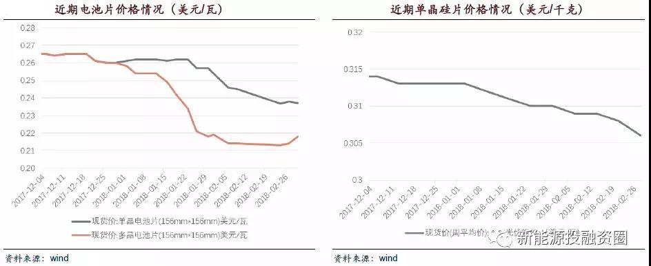 2016年在內(nèi)蒙烏?;卣型稑?biāo)中,就已經(jīng)出現(xiàn)0.45元/度的報(bào)價(jià),這兩年組件端成本快速下降,大大降低了初始投資成本;同時(shí)相比第二批項(xiàng)目,能源局在對(duì)第三批領(lǐng)跑者基地項(xiàng)目中,對(duì)可能出現(xiàn)的各種非技術(shù)成本、外部成本做了嚴(yán)格控制,如土地租金設(shè)限、外送線路共建等建議,令第三批項(xiàng)目的投資環(huán)境大幅改善,也降低了運(yùn)營(yíng)期間的成本。因此我們也有理由相信0.39元這樣的報(bào)價(jià)也不是企業(yè)在有意的惡性競(jìng)爭(zhēng),而是有信心通過(guò)技術(shù)革新和成本控制實(shí)現(xiàn)盈利。同時(shí)從2018年產(chǎn)業(yè)鏈各個(gè)環(huán)節(jié)的降價(jià)幅度來(lái)看,硅片和硅料率先降價(jià),趨勢(shì)將向下降的電池片和組件進(jìn)一步傳導(dǎo),因此項(xiàng)目承接方的技術(shù)成本將大幅減低。