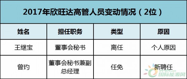 欣旺達(dá)在2017年,涉及變動(dòng)的高管人員有2位,其中1位因個(gè)人原因離任,1位新聘任。