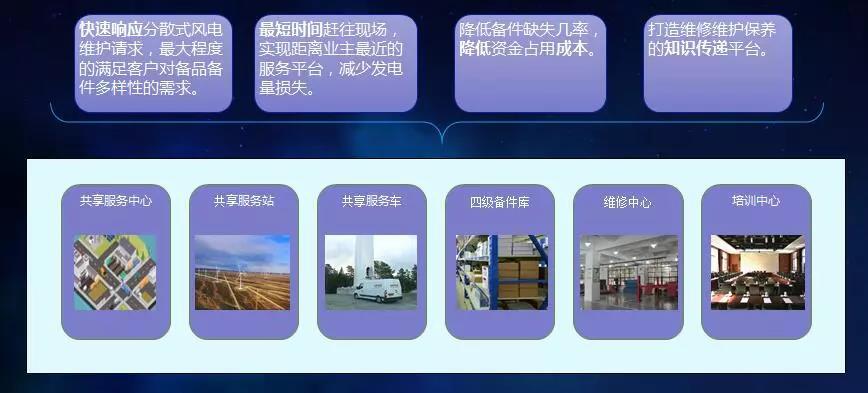 作為線下高效前臺(tái)的共享服務(wù)體系,由共享化的服務(wù)中心與智能調(diào)度的物資體系構(gòu)成。通過構(gòu)建與利用分散式風(fēng)電項(xiàng)目共享服務(wù)中心、共享服務(wù)站、共享服務(wù)車、四級(jí)備件庫、維修中心與培訓(xùn)中心,能夠?qū)崿F(xiàn)四方面的線下高效運(yùn)營:一是快速響應(yīng)分散式風(fēng)電維護(hù)請(qǐng)求,最大程度的滿足客戶對(duì)備品備件多樣性的需求。二是最短時(shí)間趕往現(xiàn)場(chǎng),實(shí)現(xiàn)距離業(yè)主最近的服務(wù)平臺(tái),減少發(fā)電量損失。三是降低備件缺失幾率,降低資金占用成本。四是打造維修維護(hù)保養(yǎng)的知識(shí)傳遞平臺(tái)。同時(shí),金風(fēng)科技攜手國內(nèi)知名保險(xiǎn)公司,給客戶提供一站式保險(xiǎn)服務(wù),簡(jiǎn)化業(yè)主保險(xiǎn)理賠流程、降低業(yè)主運(yùn)營成本、提高響應(yīng)速度,高效服務(wù)客戶。